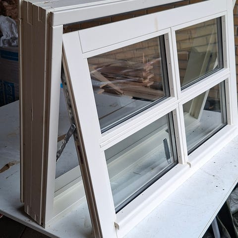 Vinduer med sprosser i hvid ramme. Klassiske vinduesrammer med glasfelter opdelt af sprosser. Egnede til montering i bolig, udhus eller lignende, hvor der ønskes vinduer med traditionelt udtryk. Flere rammer ses på billederne; mål og antal kan angives af sælger efter behov.