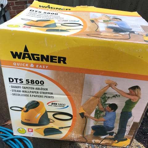 Kärcher SteamForce tapetafdamper i gul. Enheden anvendes til at fjerne tapet ved hjælp af damp. Leveres med slange og dampplade, som ses på billederne. Egnet til brug i hjemmet ved renovering og tapetnedtagning.