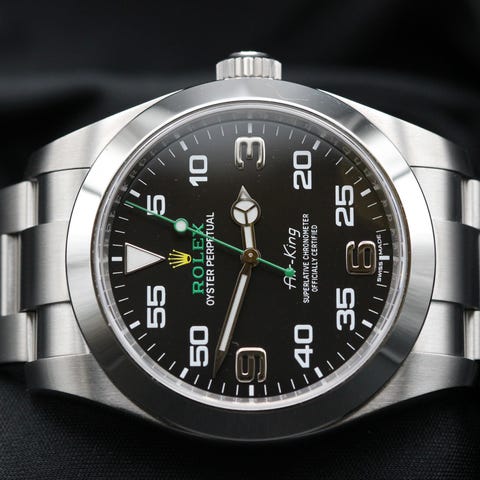 Sælger dette super klassiske og yderst stilrene Air-King som er udført i stål, måler 34mm og er med automatisk optræk. Uret er monteret med en virkelig flot sølv skive, glat lynette af stål samt udstyret med et ridsefast safirglas. Du får ikke et mere klassisk og underspillet look end dette.