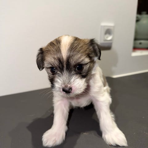 Hun bliver rigtig forkælet da hun er den eneste i kuldet. Hun bliver langhåret er brun tan og hvid.