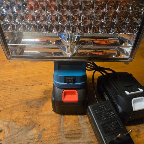 Makita LXT arbejdslampen er blå med et sort gummibelagt greb. Denne ledningsfri model er batteridrevet (batteri og oplader medfølger ikke) og er velegnet til belysning på byggepladser, i værksteder eller andre arbejdsopgaver, der kræver en bærbar lyskilde.
