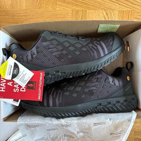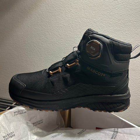 Nye og ubrugte Mascot Mascotex S7S Sikkerhedssko. Nypris 1800 kr. Med BOA Fit System. Stødabsorberende, let og fleksibel EVA-mellemsål.