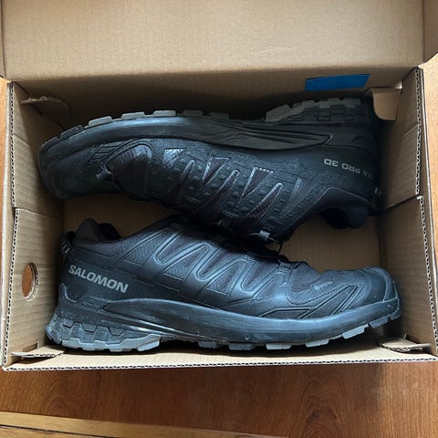 VÆRET PÅ 3-4 gange. Købt for små. Salomon sneakers i størrelse 42. Skoene er i grå med gule detaljer og har snøresystem med elastiske snørebånd og lås. Ydersålen har kraftigt mønster, egnet til brug på ujævnt underlag. Indersålerne er Ortholite, som er udtagelige. Velegnet som hverdagssko eller til let udendørs aktivitet.