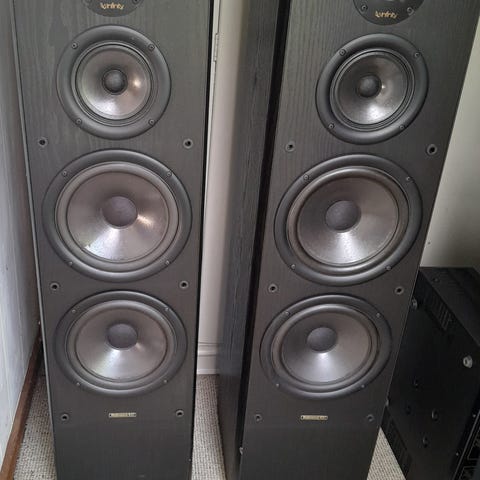 Det klassiske højttalersæt fra JPW. Nyrenoverede skumophæng på mellemtone-bas enhederne. Spiller som nye. Mørk træfiner på siderne.