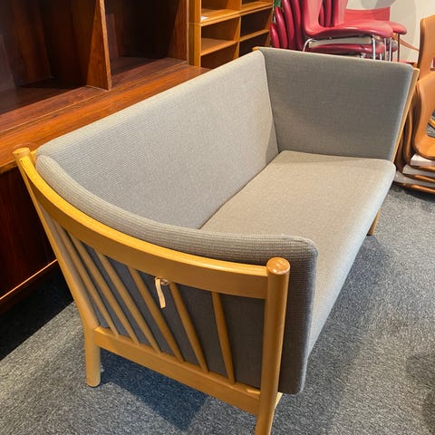 Fin 2 Pers sofa i ubehandlet bøg. Gråt stof.
