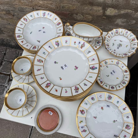 Pr. stk. Sidetallerken, lille frokosttallerken eller stor kagetallerken i Henriette fra Royal Copenhagen model 444/8518 : diameter 18 cm. God stand uden afslag, også pænt guld, 12 stk. haves. pris pr. stk. 150 kr. Kan sendes, men ikke "Fiks Færdig".