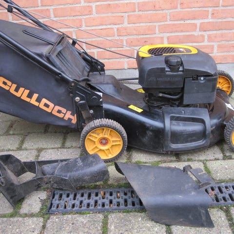 Central Park plæneklipper i sort og rød med benzindrevet motor. Plæneklipperen har opsamlingskasse bagpå og skubbehåndtag med betjeningsgreb. Der medfølger brugsanvisning, som ses på billederne. Velegnet til klipning af almindelige græsplæner i haven.