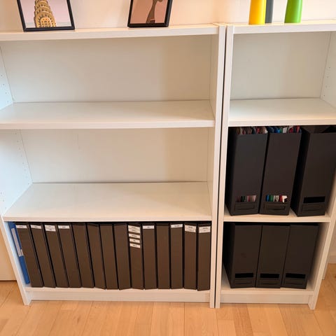 2 Billy Ikea reoler, fin stand, der er 4 hylder til hver reol.