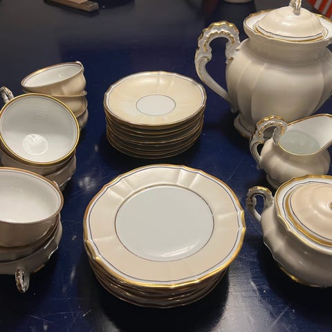 Aristo kaffestel lyseblå porcelæn med guldkant