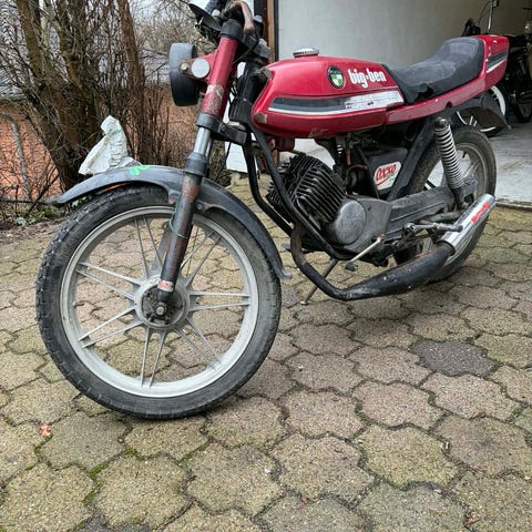 Den har skivebremse foran og 4 gear, og er et godt projekt eller udgangspunkt for en fed hverdagsmaskine. Der er almindelige brugsspor og patina som ses pÄ billederne.