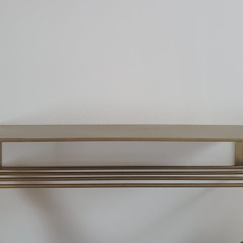 Hattehylden har lidt slid på knopperne. Træet er i fin stand og der følger 2 bøjler med.