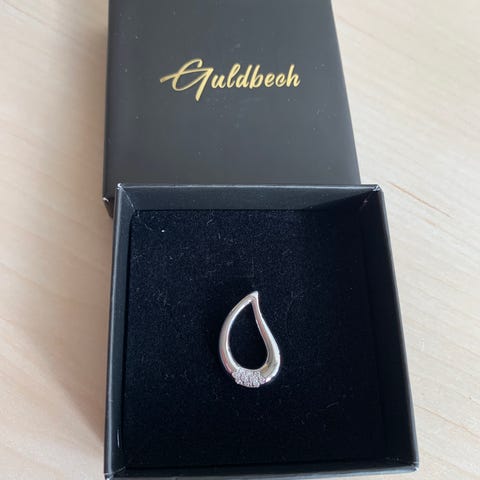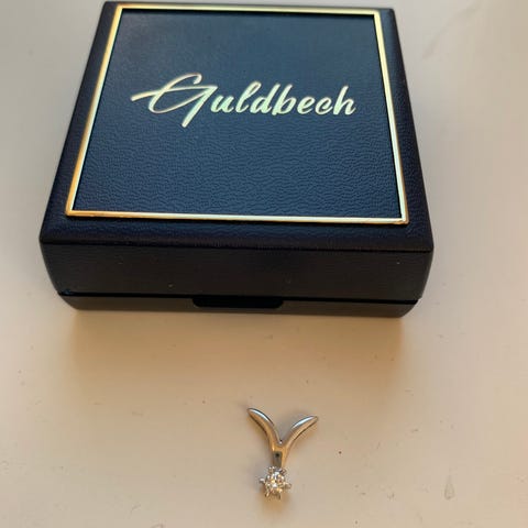 Super Flot Hvidguld Vedhæng i 14 karat guld med en lille diamant og 925 forgyldt sterling sølv halskæde ! Med æske ! NY OG ALDRIG BRUGT !