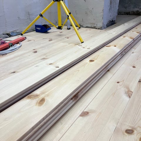 7 stk helt nye fyrretræs gulvbrædder.