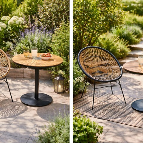 Ukendt bambus cafebord i flet og rattan naturfarvet
