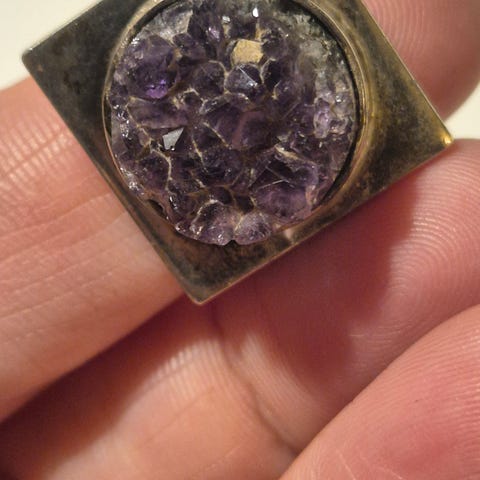 Flot sterling sølv ring med rund ametyst sten i boheme stil