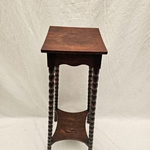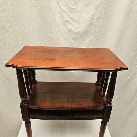 Victoria Revival sidebord med balustrade og snurrede ben, træ, dybde 30 cm, bredde 46 cm, højde 92 cm, oprindelse Storbritannien, ca. 1950–1960, i fremragende stand med minimalt slid. Klik på den blå "gå til varen" knap, for at købe eller byde på denne vare. Den samlede pris vil blive vist inden du afgiver dit bud.