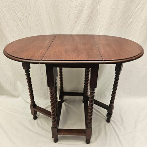 Denne karakterfulde møbel er et smukt eksempel på Victoriansk Genoplivnings-stilen, produceret i blomstringsperioden af det midt-20. århundrede (ca. 1950-1960). Designet er en hyldest til den aristokratiske engelske møbelkunst fra det 19. århundrede. Bordet er fremstillet af varmt, mørkt træ med en silkeagtig glans, som straks tilfører en nostalgisk og chic stemning til ethvert rum.