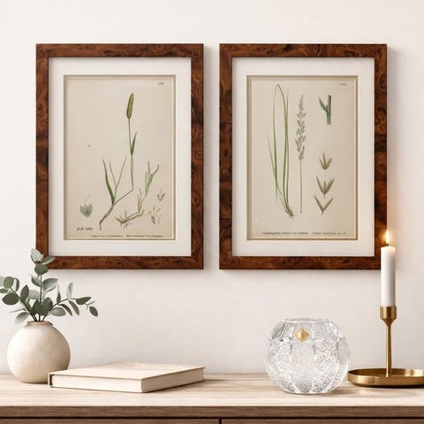 To indrammede originale sider fra English Botany af Sir James Edward Smith, vintage vægdekoration fra Storbritannien fra ca. 1970–1980, hver side måler 30 cm i højden og 22 cm i bredden med en 4 cm dyb ramme, i god stand med små tegn på alder og pletter. Klik på den blå "gå til varen" knap, for at købe eller byde på denne vare. Den samlede pris vil blive vist inden du afgiver dit bud.