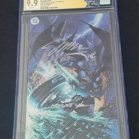 Legendary CGC 9.9 signeret “A Dark Knight Compendium” (The Viking Knight Foil LE Edition B) – Victor Garduno, en signeret graderet tegneserie fra serien Victor Garduno's A Dark Knight Compendium, i mint tilstand. Klik på den blå "gå til varen" knap, for at købe eller byde på denne vare. Den samlede pris vil blive vist inden du afgiver dit bud.