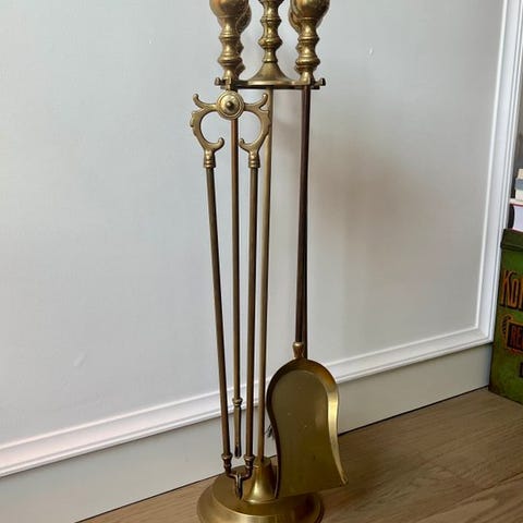 Skinnende pejsesæt, holder med 4 dele, meget stort og tungt