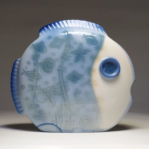 Lino Zampiva har skabt en polykrom porcelænsskulptur Carpa Koi e fiore di loto, produceret i Vicenza, Italien af Porcellana Vicentina i 1990’erne, mål 30 × 30 × 17 cm, vægt cirka 2,3 kg, håndsigneret og i fremragende stand. Klik på den blå "gå til varen" knap, for at købe eller byde på denne vare. Den samlede pris vil blive vist inden du afgiver dit bud.