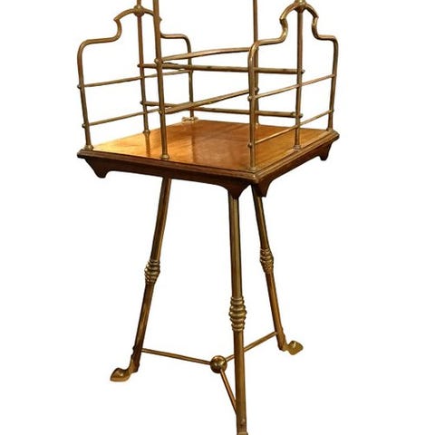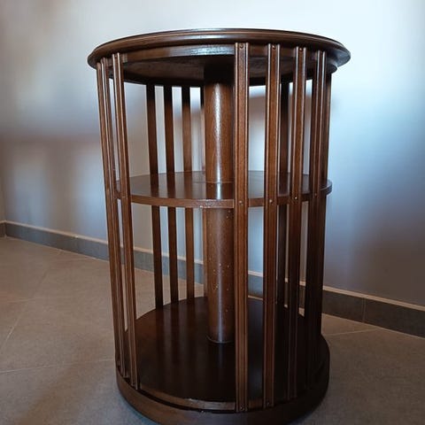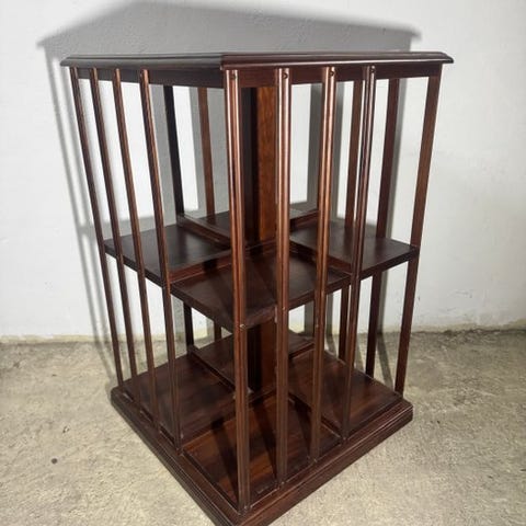 Enestående roterende ældre bogreol fra slutningen af 1800-tallet, tilskrevet den prestigefyldte victorianske producent Maple & Co., en af de mest anerkendte mærker inden for højkvalitets engelsk møbler. Dateret omkring 1898–1899, er det en særdeles sjælden genstand, der forener historie, håndværk og funktionalitet i et enestående og elegant design.
