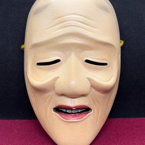 Sjælden Kurohige Noh maske, håndhugget træmaske af høj kvalitet fra Japan af Saikai 西海, dateret 1980–1990, måler 21 × 14,5 × 9 cm, i god stand med tegn på slid. Klik på den blå "gå til varen" knap, for at købe eller byde på denne vare. Den samlede pris vil blive vist inden du afgiver dit bud.