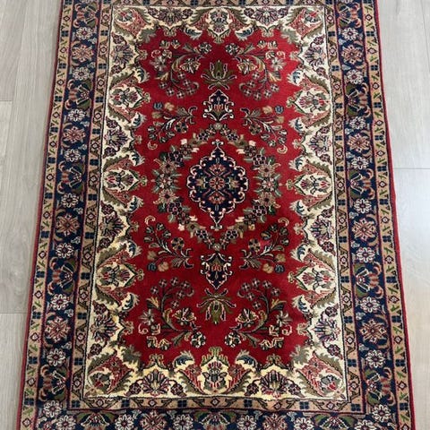 *Før indgåelse i vores lager, renset hos et vaskehus, der er specialiseret i håndknudede tæpper, derefter ikke længere brugt.