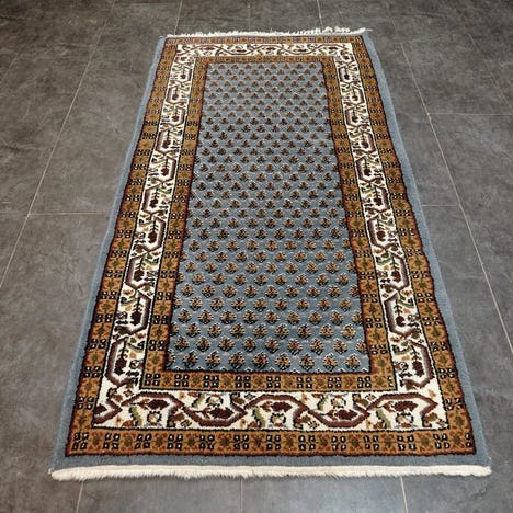 Oprindelse: Indien; håndkløppet Sarough Mir Orient tæppe af uld på bomuld, mål 160 × 90 cm, fra slutningen af det 20. århundrede, i god stand. Klik på den blå "gå til varen" knap, for at købe eller byde på denne vare. Den samlede pris vil blive vist inden du afgiver dit bud.