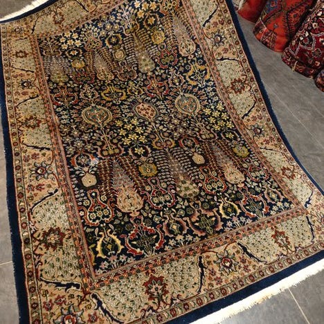 Dette uld-til-uld tæppe er nyt og håndlavet.