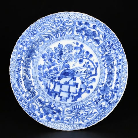 Kinesisk Kangxi-porcelænsø Østlig tallerken Grand Plat Famille Verte Kangxi, oprindelse Kina, højde 6,5 cm, længde 33,5 cm, bredde 25 cm, stand god med en sprække på siden og to grebshuller i bunden. Klik på den blå "gå til varen" knap, for at købe eller byde på denne vare. Den samlede pris vil blive vist inden du afgiver dit bud.