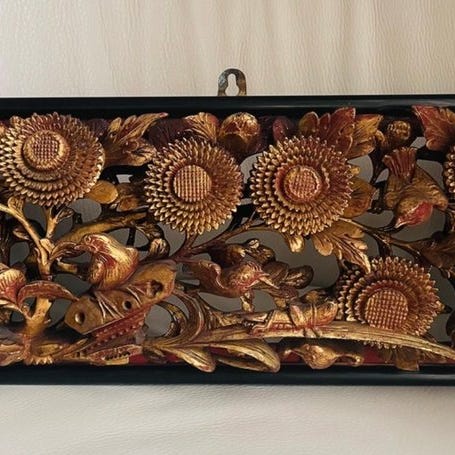 Fantastisk kinesisk sideskab fra elmtræ i massivt træ, som er ret tungt, cirka 28 kg, og kendetegnet ved smukke frontpaneler med sort lakbaggrund, prydet med vidunderlige udskærings- og reliefdekorationer, der forestiller blomster motiver håndlavede. Hele møblet er afsluttet med rød lak både udvendigt og indvendigt, med en hylde og to skjulte skuffer udstyret med satinérede messinghåndtag, ligesom låse og udvendige hængsler, typisk for håndværket i regioner som Shanxi eller Fujian. Et sjældent stykke, meget eftertragtet på antikvitetemarkedet, med stor værdi.