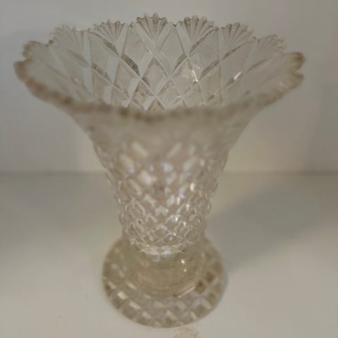 Saint Louis Bubble krystalvasen, gennemsigtig, 25 x 15 cm, Frankrig, fra 1980-1990, i god stand med enkelte slidspor og alderspletter. Klik på den blå "gå til varen" knap, for at købe eller byde på denne vare. Den samlede pris vil blive vist inden du afgiver dit bud.
