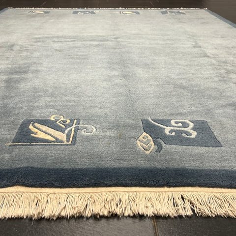 Håndknyttet nepalesisk designertæppe, model Nepal Royal, oprindelse Nepal, uld på bomuld, blå, mål 298 x 203 cm, vægt ca. 30 kg. Klik på den blå "gå til varen" knap, for at købe eller byde på denne vare. Den samlede pris vil blive vist inden du afgiver dit bud.
