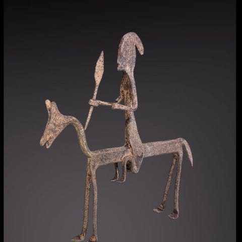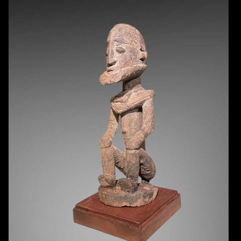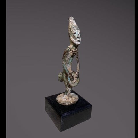 DOGON-skulptur - 13 cm, bronze, oprindelse Mali, Dogon-folk, i fremragende stand, mål 13 x 4 x 3 cm, vægt 200 g, leveres med stand, provenance: Collection privée, tidligere del af den franske samling 'Jean Louis Viot', certifikat fra Galerie des Dominicains medfølger. Klik på den blå "gå til varen" knap, for at købe eller byde på denne vare. Den samlede pris vil blive vist inden du afgiver dit bud.