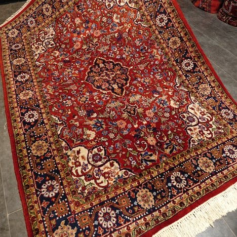 Vær venlig at betrakte tæppet med tålmodighed og opmærksomhed. Hvert håndværksmæssigt vævet tæppe er unikt i sit mønster, sin skønhed og farveharmoni og derfor et kunstværk i sig selv.