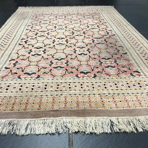 Dette tæppe er et håndknudet Bukhara-tæppe, lavet af naturlige materialer og holdbare over tid. Måden det er knudet på og mangfoldigheden i mønstrene gør dette tæppe unikt og understreger dets autentiske og traditionsrige karakter.