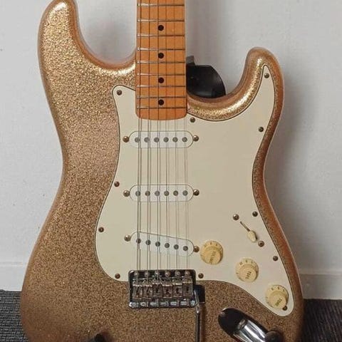 Fernandes FR-95S Gold FRT Full Mode Sustainer elektrisk guitar, fremstillet i Japan, i god stand, testet og fungerer, vægt 12 kg, med hårdtui. Klik på den blå "gå til varen" knap, for at købe eller byde på denne vare. Den samlede pris vil blive vist inden du afgiver dit bud.