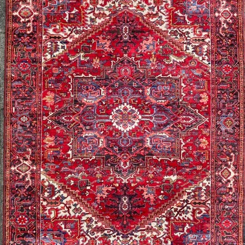 tilbuddet er et håndknyttet Heriz orient-teppe fra Indien.