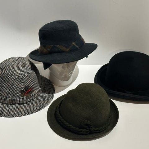 Hatten kommer i den skræddersyede papkuffert med to jakkeslagshandsker, cirka størrelse 7,5.