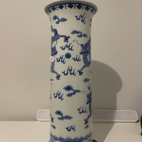 På billedet ser du en stor antik kinesisk vase, et meget smukt dekorativt stykke kinesisk kunst!