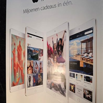 Et originalt promoveringsplakat i stort format til iPad Air 2, udgivet i 2014. Dette plakat afspejler Apples højdepunkt med 'tynd og let'