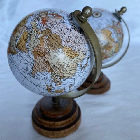 Antikt bordglobus af engelsk oprindelse, monteret på en metalstruktur, bronzlatoneret, underbase i sort velour; tilstanden er meget god, som ny, velholdt. Et omfattende fotodokumentation er vedlagt til vurdering; der vil blive anvendt specialemballage til destination i en kasse med stort volumen og vægt. Forsendelser uden for Den Europæiske Union eller
