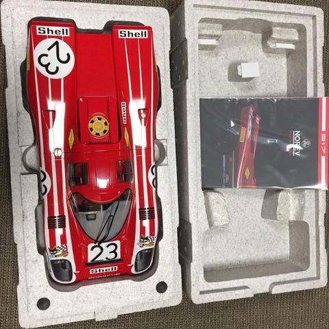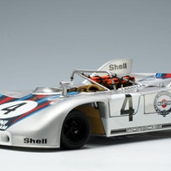 Smuk og meget hurtig, dette var den, der vandt i Le Mans i 1971, kørt af Helmut Marko og Gijs van Lennep, som overraskende slog de officielle 917 med lang hale. POCHER er et førende mærke inden for modellering, og modellen er 523 mm lang og 26,7 mm bred. Den består af 316 dele. Den robuste emballage består af tre polystyrolbokse med dele, som er forseglet, og disse er pakket i en papkasse med billeder af modellen, som igen er inde i en anden kasse. Der er også en plakat af bilen. Afsendes kun i Europa. God auktion.