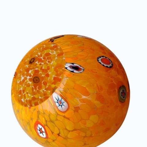 Murano-glas centerstykke fra Yalos Murano (Italien, Veneto), flerfarvet filigranearbejde med iriserende stribet effekt, mål: højde 20 cm, bredde 29 cm, dybde 19 cm, fra 2000–2010, i fremragende stand, sjældent brugt med mindre tegn på slid. Klik på den blå "gå til varen" knap, for at købe eller byde på denne vare. Den samlede pris vil blive vist inden du afgiver dit bud.