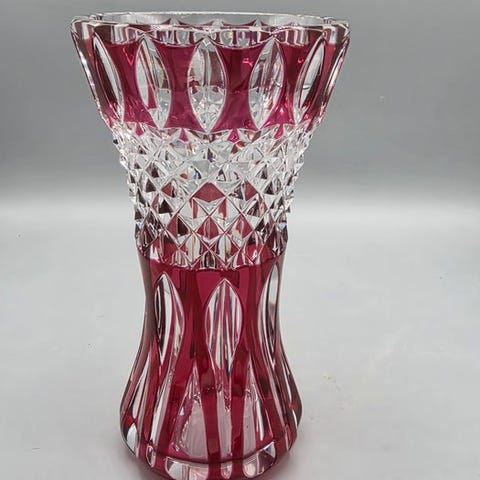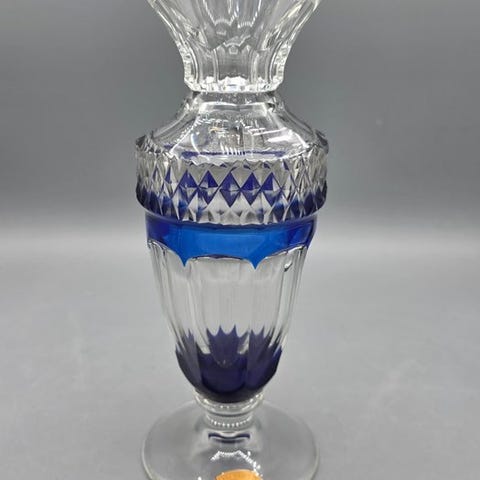 Frugtskål af krystal fra Val Saint Lambert, Belgien, dateret 1960-1970, i fremragende stand med minimale slidmærker; mål ca. 20 cm i længde og bredde, 8,5 cm høj. Klik på den blå "gå til varen" knap, for at købe eller byde på denne vare. Den samlede pris vil blive vist inden du afgiver dit bud.
