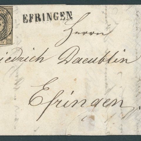 Baden 1862 - friskt lokalt brev/sorgbrev fra Konstanz med 1 Kr. gråsort - Mi....