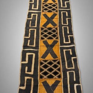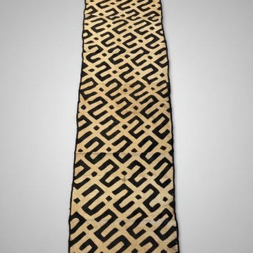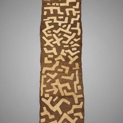 Kuba-textil fra Congo, Shoowa-Kuba; Provenance: belgisk privat samling; dimensioner 280 × 55 cm; estimeret periode 1980-1990 og 1990-2000; tilstand: god med noget slid og pletter ældre alder. Klik på den blå "gå til varen" knap, for at købe eller byde på denne vare. Den samlede pris vil blive vist inden du afgiver dit bud.