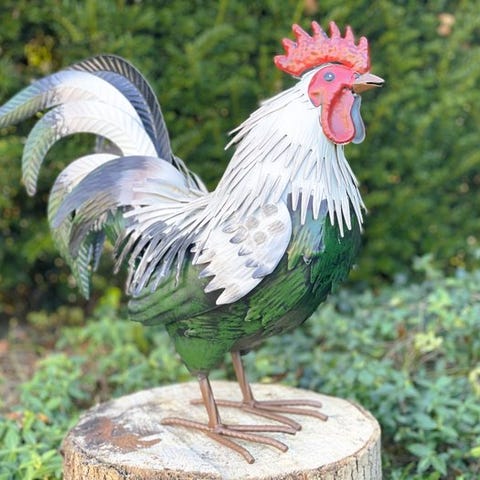 Tilføj karakter og flair til din have med vores livagtige metalhane. Med sit detaljerede fjerdragt og levende udstråling tilføjer denne hane et charmerende præg til enhver udendørs plads. Fremstillet af metal af høj kvalitet med holdbarhed og vejrbestandighed er denne hane perfekt til at levendegøre blomsterbed, græsplæner eller terrasser. Tilføj et Strejf af gårdscharme til din have med denne smukke metalhane. Dimensionerne er som følger (+/-):