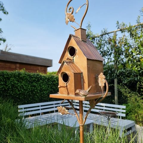 Dekorativt havepynt fuglehus af jern/metal, estimeret periode 2010-2020, højde 190 cm, bredde 28 cm, dybde 21 cm, oprindelse Europa, i god stand med mindre tegn på alderdom og pletter. Klik på den blå "gå til varen" knap, for at købe eller byde på denne vare. Den samlede pris vil blive vist inden du afgiver dit bud.